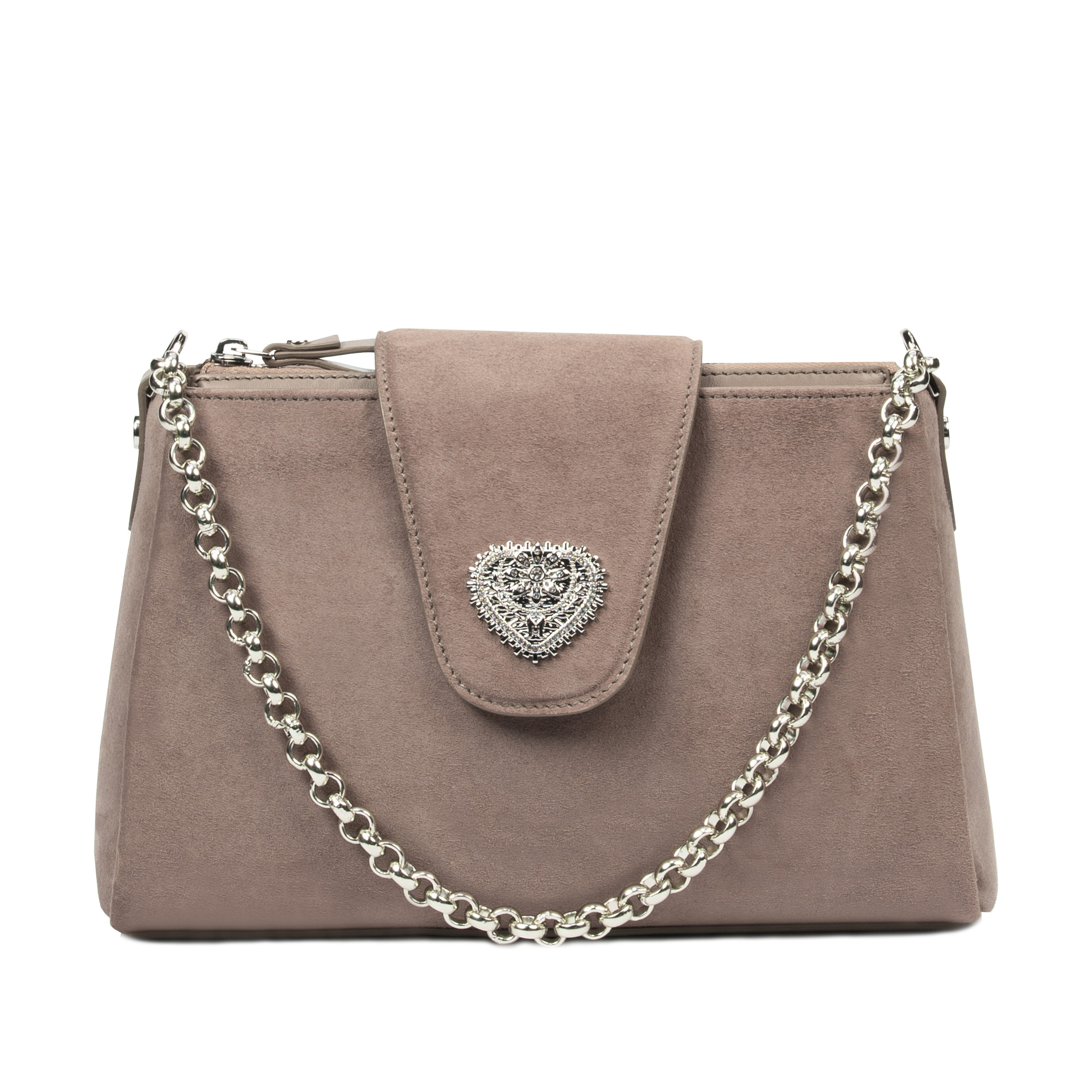 This women's shoulder bag made of genuine leather by Marelbo stands out for its pleasant appearance and the quality of the materials used. The genuine leather has an extraordinarily pleasant texture to the touch, which gives it a special presence. It is a bag suitable for daily use and for different contexts. The silver metal chain and the decorative heart-shaped element attract attention with their carefully crafted details. The closure is secure, so personal items are safe while being worn. The metal elements are resistant and retain their appearance over time. Order right now!