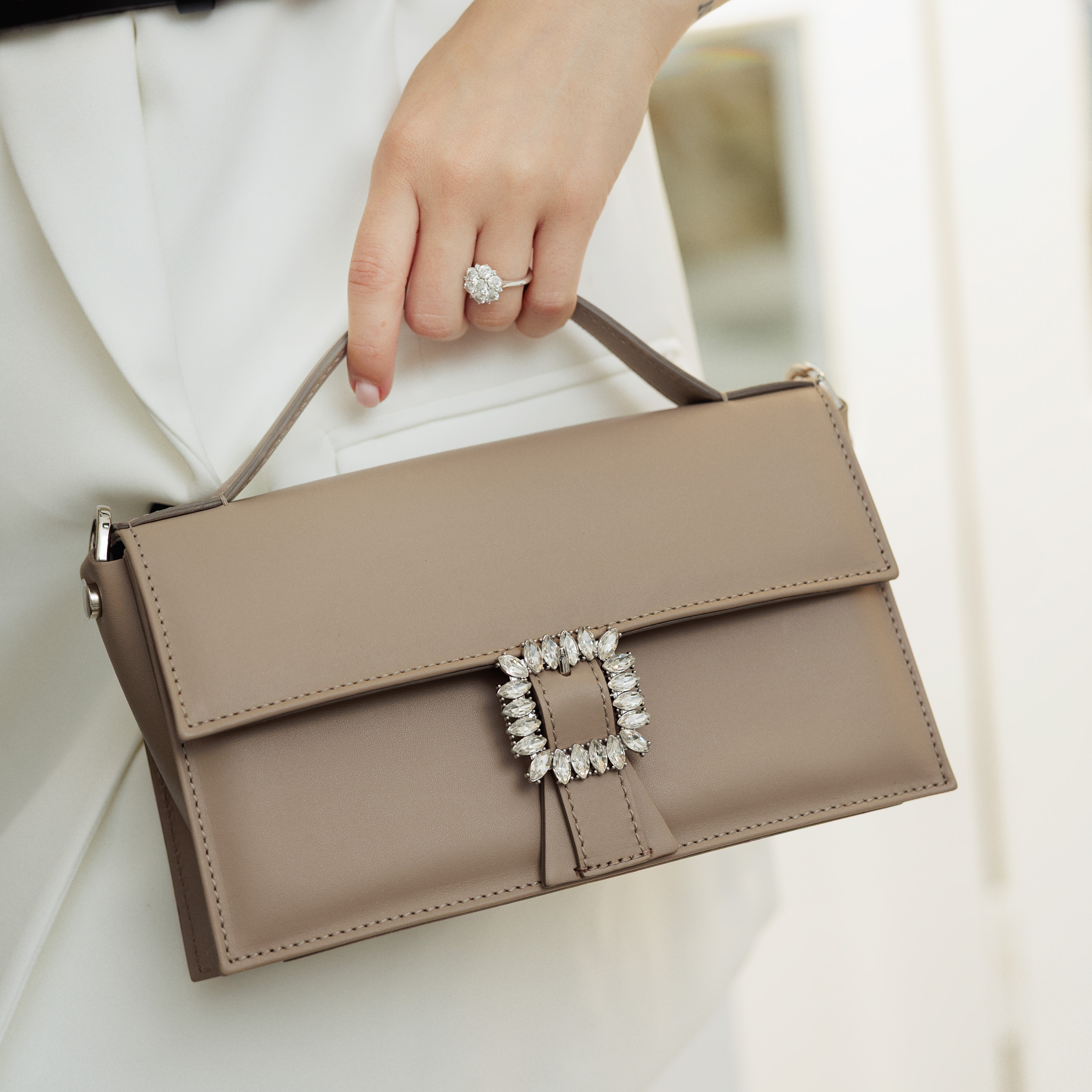 This taupe handbag from Marelbo is a statement of confidence and character! Made from the highest quality natural leather, every detail is designed to add a touch of charm to any outfit. The delicate and velvety leather offers a special presence, and the shiny buckle perfectly complements the design, making this bag a perfect choice for women who love to stand out. Whether you want to impress at a special event or complete your everyday outfit with a special accent, this bag is exactly what you need! Manufacturer price!