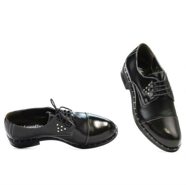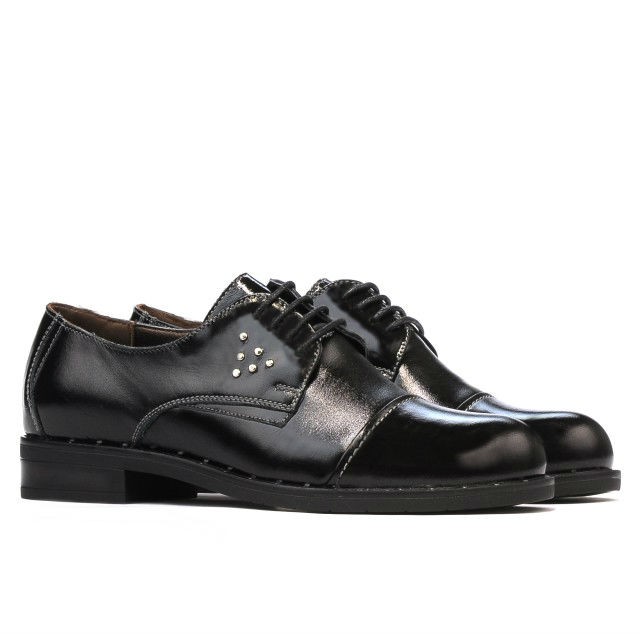 Made of lacquered natural leather, women's casual shoes successfully complete your outfit this season. The comfortable and light sole is provided with a decorative pattern. The white stitches drawn on the surface of the shoe, as well as the decorative targets will make you stand out in a pleasant way. Quality and refinement at an affordable price.