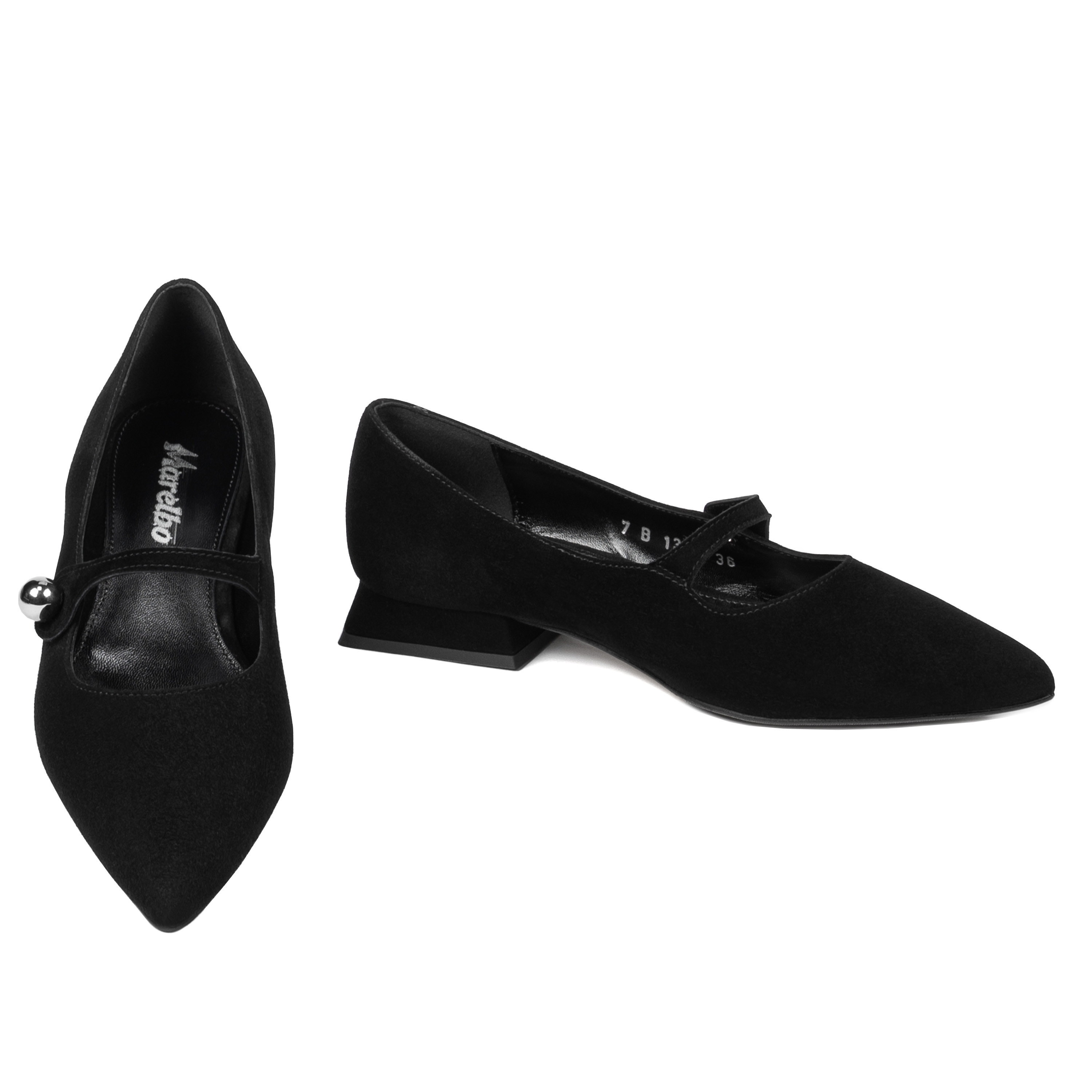 Made from premium genuine leather, these black suede ballerinas are designed to last over time, maintaining their impeccable shape and texture even after repeated wear. The stable and flexible sole provides you with the support you need, and the soft interior turns every step into a pleasant experience. They are perfect for long days at the office, for important meetings or for moments when you want to feel good without feeling tired. The thin strap adds a subtle touch of style, and the low heel allows you to enjoy stability throughout the day. Whether you choose to wear them with a dress, an elegant suit or a pair of casual pants, this model adapts perfectly to your style. When you invest in a pair of shoes, you want to know that you have made the right choice. And these ballerinas from Marelbo offer you exactly what you are looking for: confidence with every step, a superior level of comfort and quality that stands the test of time. Order now!